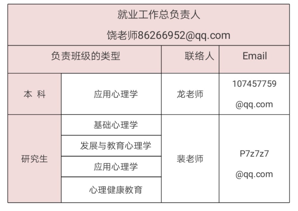 应用心理学——培养具有坚实的心理学基本理论、基本知识和基本科研技能,能从事心理学及相关学科的科学研究、中小学心理健康教育、心理咨询与辅导、人力资源管理等相关工作的应用型专门人才。