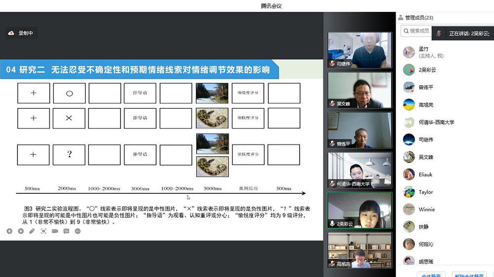 参与本次答辩的学生共计61人,涉及学术、专业硕士两个类别,5个专业,共分为8组(包含6组线下和2组线上),每组由5位答辩委员,1名答辩秘书、7-8名答辩学生组成。同时部分非毕业班的同学也参加到了答辩会议并认真观摩学习。