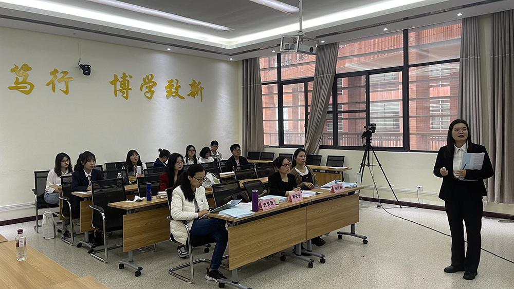 答辩流程分为学生论文陈述、答辩委员点评和提问、学生作答、答辩委员会成绩评定四个环节。答辩会上,答辩学生从选题的目的、意义、研究思路、研究内容等方面对学位论文进行简要陈述,答辩委员分别对同学们的论文和汇报情况进行提问点评并给出指导建议,答辩学生对提出的问题逐一进行回答并认真记录指导建议。答辩环节结束后,答辩委员会召开表决会议,对参与答辩的学生和论文进行最终评定,投票表决。