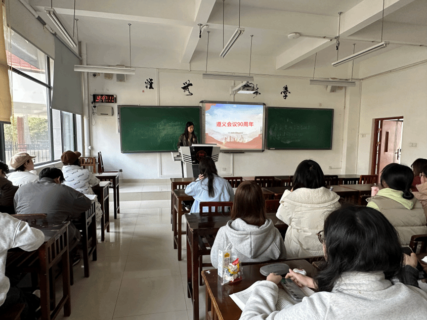 90年前,遵义会议成为中国革命的伟大转折点。在此次纪念遵义会议90周年的主题班会中,各班精心筹备,通过展示历史资料、情景模拟等方式,生动再现1935年会议的关键场景。辅导员详细解读会议背景与重要决策,同学们深受触动。在互动交流时,大家踊跃发言,深入探讨遵义会议精神在当下的价值,纷纷表示要传承先辈坚定信念、勇于变革的精神。