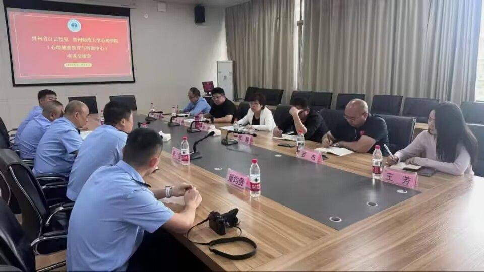 5月26日下午,为充分发挥437ccm必赢国际官网(心理健康教育与咨询中心)(以下简称学院﹤中心﹥)科教资源优势和人才优势,切实增强服务地方经济社会发展和社会心理服务体系建设的能力水平,持续提升学院(中心)的核心竞争力和社会影响力,2025年5月26日下午,学院(中心)与贵州省白云监狱在学院(中心)301会议室展开合作探讨。贵州省白云监狱党委委员、副监狱长田豫一行5人莅临必赢,与学院(中心)党委书记李凤、副书记苏醒、副院长(副主任)陈维、罗杰就校监合作、特殊人群心理矫治等业务进行了深度交流。