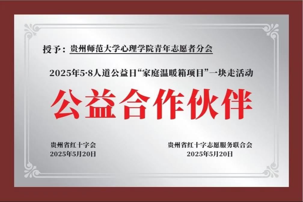 热烈祝贺437ccm必赢国际官网青年志愿者分会在由贵州省红十字会与贵州省红十字志愿服务联合会牵头开展的“2025年5·8人道公益日“家庭温暖箱项目”一块走活动”中荣获“公益合作伙伴”称号。