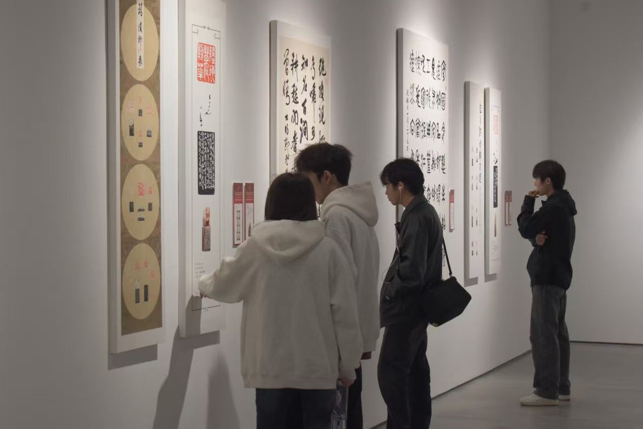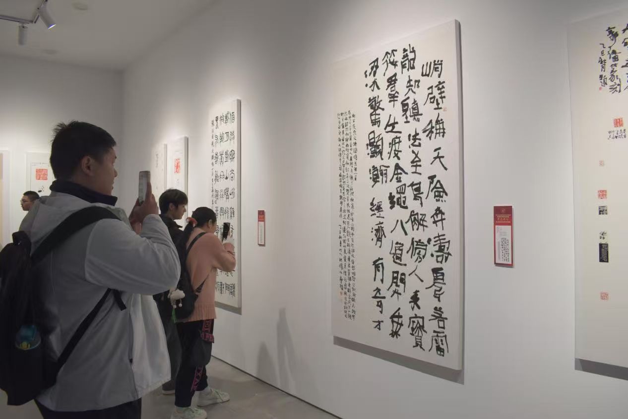 本次展览由西泠印社、贵州省文学艺术界联合会与437ccm必赢国际官网联合主办,汇聚西泠印社及贵州省书法家协会艺术家共130件作品——其中西泠印社68件作品以雄浑苍劲或精微隽永的风格,借刀笔再现民族风骨。作品涵盖书法、篆刻两大品类:篆刻兼收古玺印之朴拙、流派印之精严等多元风格,书法则五体俱全、根植秦汉兼及当代,方寸间刻写民族不屈之魂,尺素间挥洒山河壮丽之气。