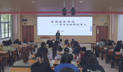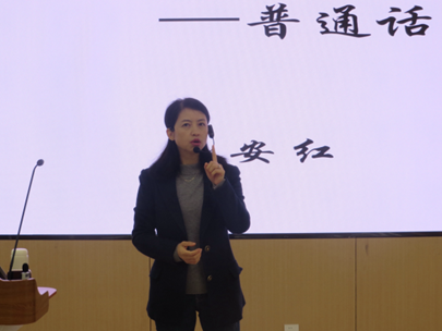 10月21日上午,安红老师以“普通话不普通”为主题开展普通话培训。安红结合自身经历,以生动的案例为引,探寻教师语言的独特魅力,强调规范讲好语言的重要性,以及讲好普通话对于教育教学、国家文化建设和社会发展的重要意义。培训过程中,安红通过一系列互动训练,帮助学生改善“平翘舌不分”“声调不准”等问题,以提升普通话语音的准确性与表达的亲和力,并分享相关的资料供大家学习。
