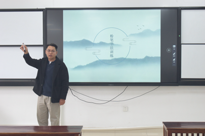 10月20日下午,何陈竹老师在公教3404教室,从粉笔字的握法姿势切入,为学生开展了一场内容翔实且实用性极强的粉笔字书写规范训练。课程中,何老师围绕粉笔字的笔画展开讲解,让学生了解汉字的书写原理,并解读“破方为圆”的书法原理,针对行书的训练、行楷间的关系等内容进行剖析。同时现场示范书写,笔锋遒劲,让学生直观了解书写规范和掌握粉笔字书写技巧,深化对书法间架结构与艺术美感的认识。