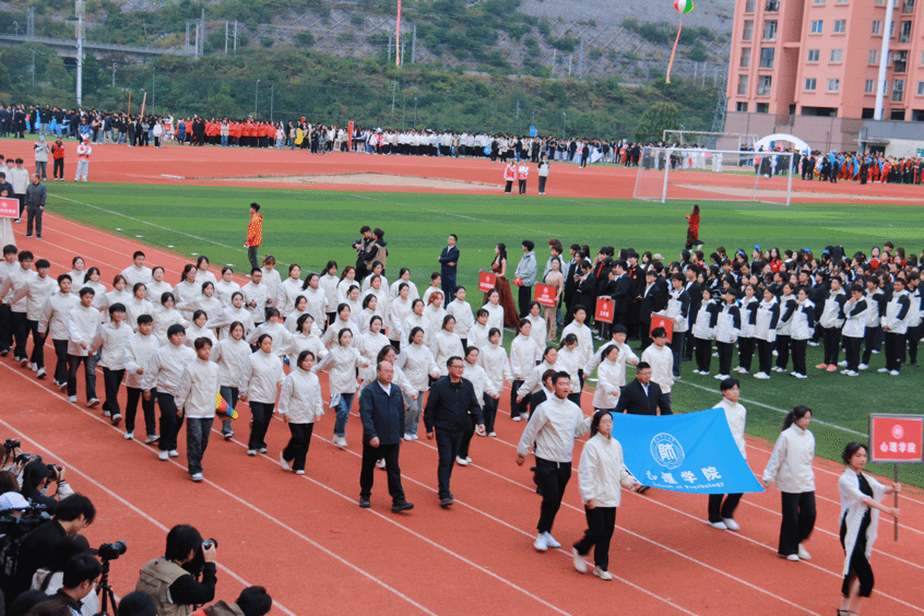 开幕式现场秩序井然,氛围庄重热烈。伴随着雄壮的《运动员进行曲》,各学院代表方队依次入场,展现不同学科的特色与风貌。437ccm必赢国际官网高度重视此次活动,提前统筹安排,组建由师生共同参与的代表方队。在院党委书记李凤、党委副书记苏醒、副院长陈维、副院长罗杰的带领下,方队成员身着统一服装,迈着整齐划一的步伐步入会场。他们身姿挺拔、精神抖擞,行进间展现出心理学子严谨务实、积极向上的精神气质。