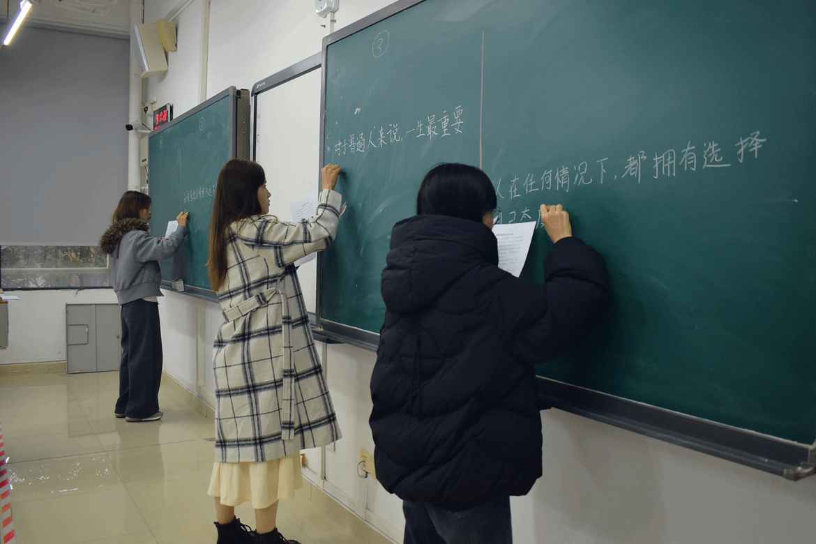 上午9时,粉笔字竞赛在公教楼2201至2203教室同步开赛。参赛选手在规定时间内完成指定内容的书写,展现出规范的笔画结构和工整的版面布局。评委从字形规范、章法布局、书写技巧等维度进行综合评分。该项比赛有效检验了学生的板书基本功,为其未来教学生涯奠定了坚实基础。