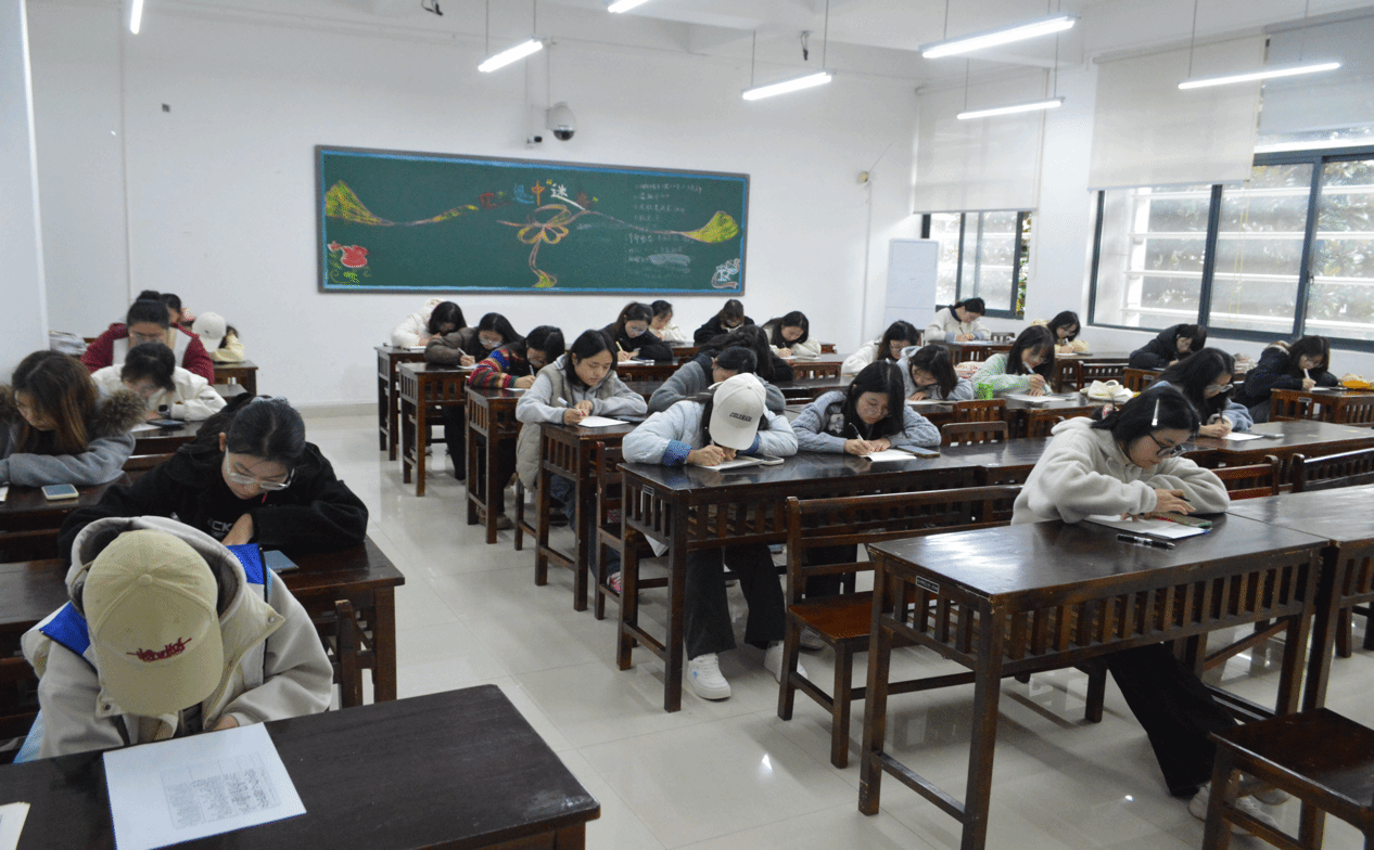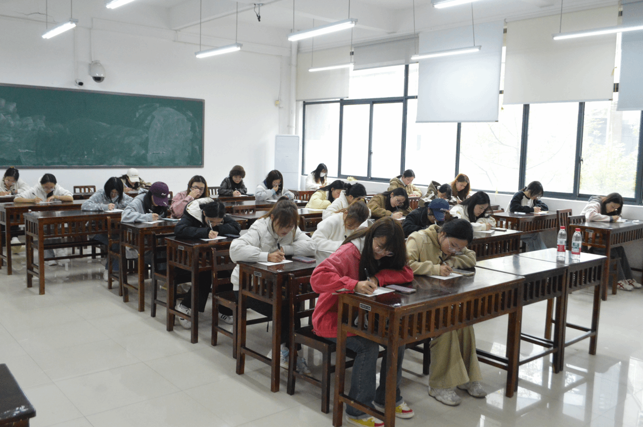 下午2时,硬笔字比赛在公教楼2201、2202教室举行。赛场秩序井然,选手们全神贯注于书写创作。参赛选手以端正的书写姿势和规范的笔顺规则使作品呈现出整洁的卷面效果。通过此项比赛,学生们进一步认识到规范书写在教学工作中的重要性,提升了书写技能的职业应用能力。