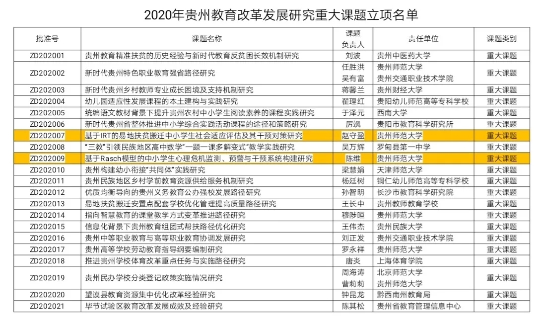 祝贺赵守盈老师、陈维老师获2020年贵州教育改革发展研究重大课题立项!