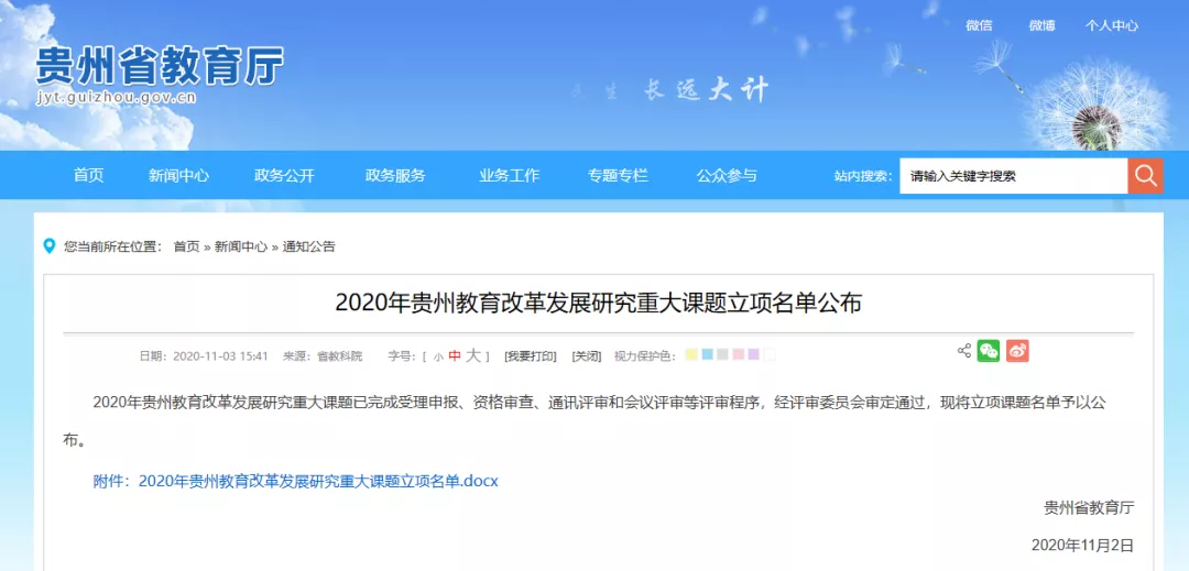 2020年贵州教育改革发展研究重大课题已完成受理申报、资格审查、通讯评审和会议评审等评审程序。经评审委员会审定通过,现将立项课题名单予以公示。