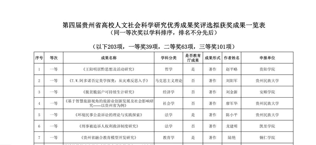 祝贺陈维、罗禹、程刚三位老师获第四届贵州省高校人文社会科学研究优秀成果奖一等奖。