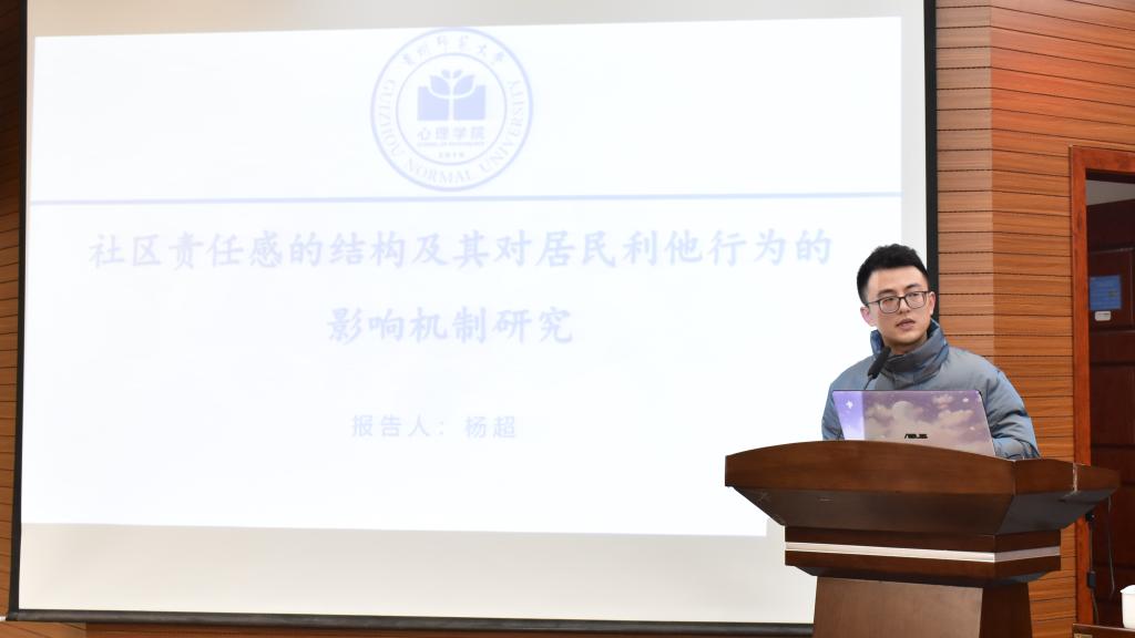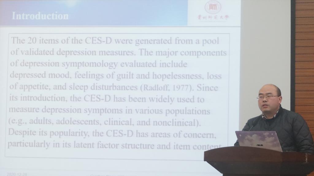学术交流环节阶段,主要以“‘十四五’时期贵州省社会心理服务体系完善与提升”为主题展开交流研讨。437ccm必赢国际官网罗杰老师、杨超老师分别作了《Factor structure of the Center for Epidemiological Studies Depression Scale (CES-D):An exploratory structural equation modeling》和《社区责任感的结构及其对居民利他行为的影响机制研究》的主题报告。