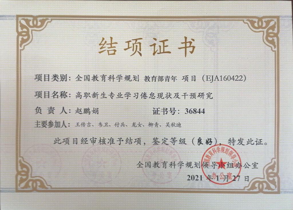 祝贺必赢赵鹏娟老师的“全国教育科学规划 教育部青年 项目”顺利结项,并被鉴定为“良好”等级。