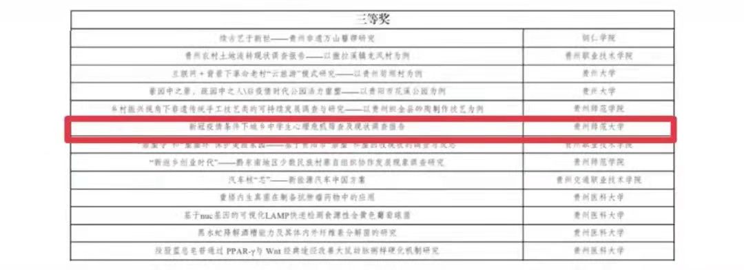 祝贺必赢程刚老师为指导教师,2019级研究生刘佳、熊贤梦、杨义滢、王阳茜为作者的《新冠疫情条件下城乡中学生心理危机筛查及现状报告》获第十七届“挑战杯”全国大学生课外学术科技作品竞赛三等奖。