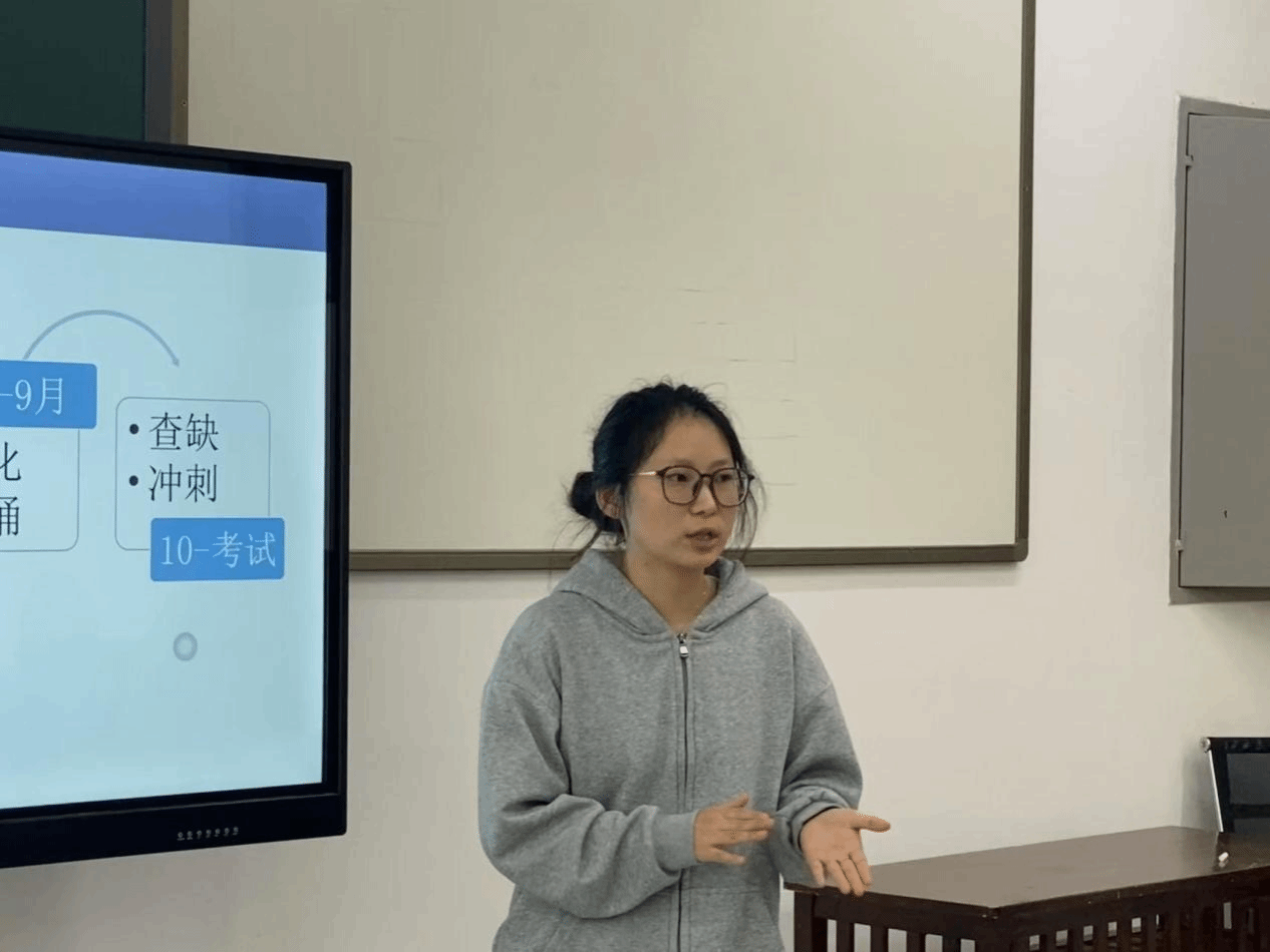 作为特邀嘉宾,本校2024级研究生杨丹丹结合自身经历,从“时间管理”“考试准备”“心态调整”三方面展开分享。她提到,备考需注重效率而非单纯堆砌时间,建议采用“任务导向法”规划每日学习目标。
