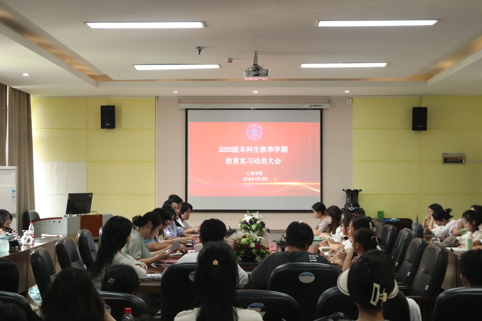 6月28日下午,437ccm必赢国际官网于学院2302会议室召开2020级本科生秋季学期教育实习动员大会。学院党委书记杨建原、党委副书记饶蕾、副院长陈维、2020级应用心理学班辅导员姚成奎、班主任王芳及2020级应用心理学班全体同学生参与会议。会议由饶蕾主持。