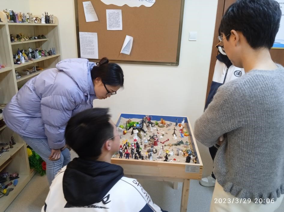 老师鼓励我们掌握一门咨询技术,除了沙盘游戏,我们小组有的成员也在学习其他技能。中心的种种道具和素材层出不穷,老师们的知识之门毫不吝啬的向我们敞开,总让我们感叹能够来一中实习、能够遇到几位老师是多么幸运。