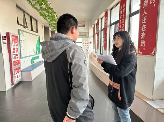 姚祎然老师指导刘娟、成露霜、李露露和张奋勤负责不同的班级,并根据第二个周学生填写的心理健康测评问卷的具体情况进行谈话和沟通。