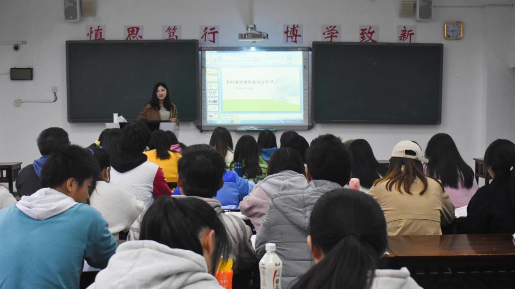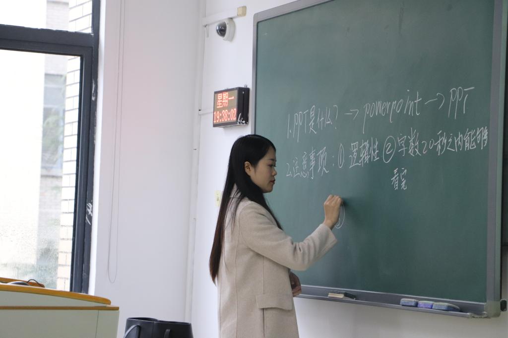 在具体的实践操作中,老师针对同学们制作过程中的问题给予了修改建议,通过PPT教学理论与实操培训,同学们的课堂教学课件制作能力得到提升。