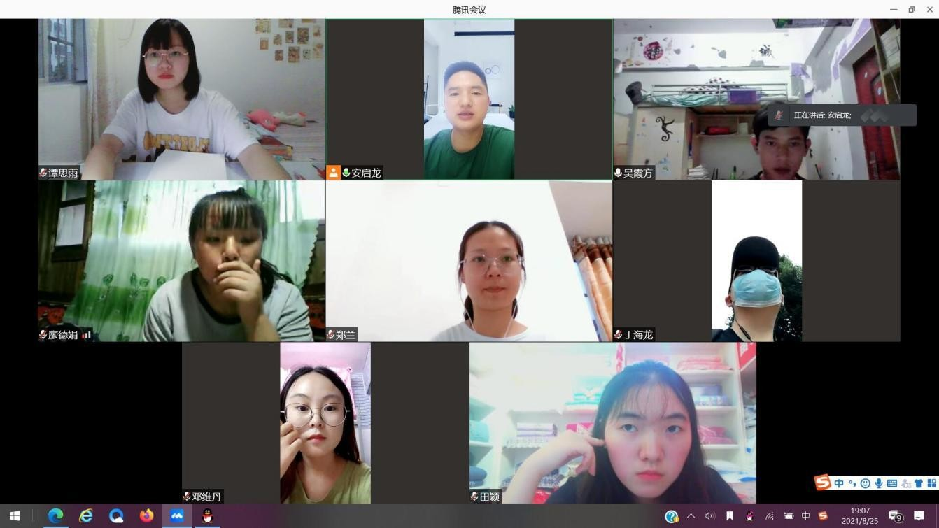 8月25日,小组成员与安启龙老师通过线上视频的方式进行了第五次岗前培训会议。会议伊始,安老师对下一次的会议进行了安排,下一次的会议的内容主要是关于班主任工作这一个版块。安老师在与本小组成员的共同协商下,将下次会议定于本周五(2021年8月27日)19;00召开。随后,安老师给我们提出了一个问题:为什么要录一个教学片段的视频?安老师抽取了小组成员进行回答。郑兰认为录制教学片段可以体现语言流畅程度、思维逻辑和教姿教态。邓维丹认为从教学片段的视频中可以看出来我们的教学水平。两位同学回答完毕之后,安老师接着又提出了一个问题:安老师怎么通过视频看出大家的教姿教态和教学水平?田颖同学回答:视频里可以看出言语、语气、姿态以及整个片段的流畅程度。随后安老师对本组的教学片段视频里未出现本人的三名同学的提出了建议,录课是需要看到讲课者的,只有看到讲课的人,才能看出这个人对教学内容的把握。