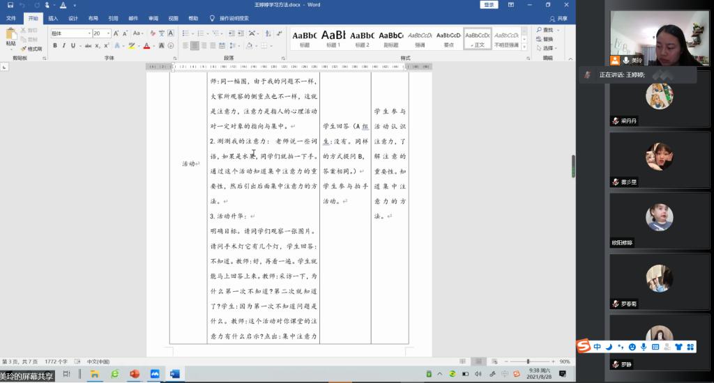 讲解完这套教学设计的问题后,美玲老师针对每位同学都存在的问题进行了提醒:要注意教学设计的格式排版、教学逻辑一定要清晰、每个活动环节的安排要讲述清楚。