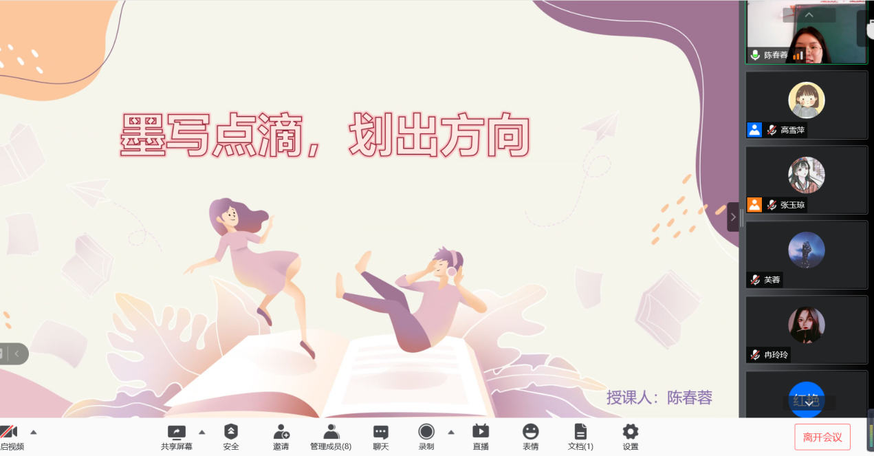 陈春蓉:在这次讲课中学习到了很多东西,从小组成员的讲课中收获到,上课要注重理论知识的建构,每个环节之间的合理联系等等。同时也看到了自己的不足之处,知识的聚焦重点需要灵活运用,在和学生的互动交流上也要更加丰富,争取在下一次录课过程中将这些地方改进。