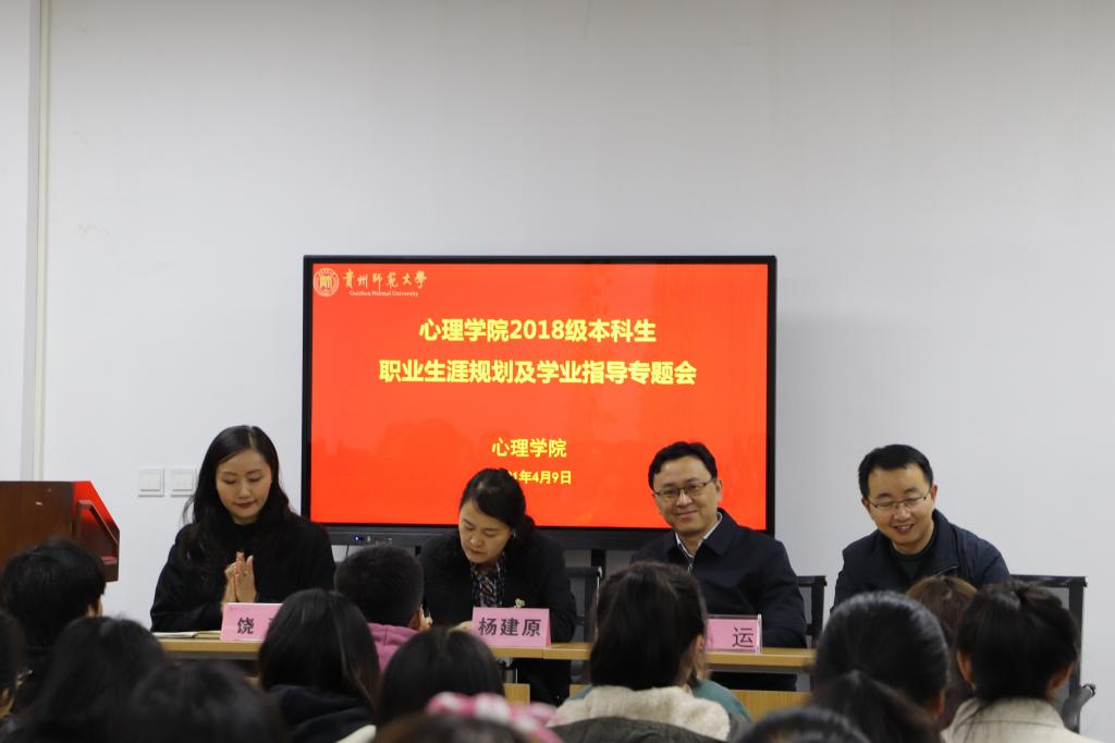 4月9日下午,437ccm必赢国际官网于花溪校区心理健康教育与咨询中心汇报厅开展了2018级本科生职业生涯规划及学业指导专题会。学院班子成员、2018级辅导员及全体学生参会,会议由院党委副书记饶蕾主持。