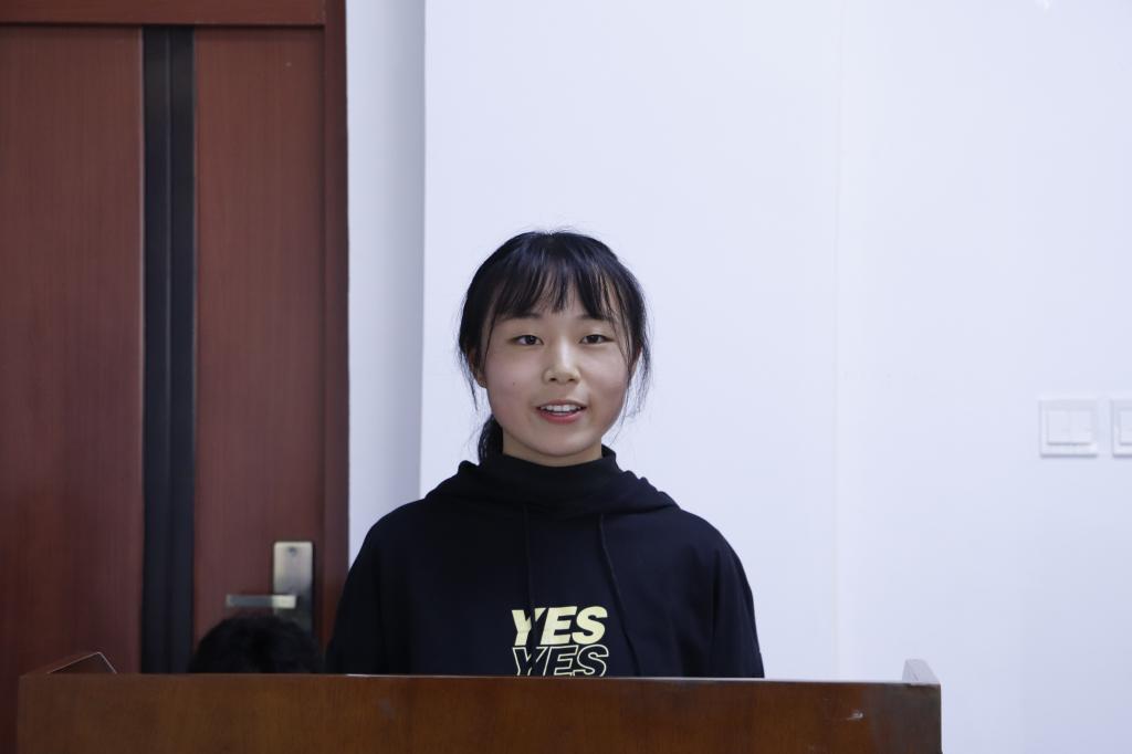 2018级赵可怡作为老生代表发言,她结合自己大学生活经历,与同学们一起分享了学习和生活故事,激励大家勇于追求梦想,珍惜韶光,争做全面发展大学生。