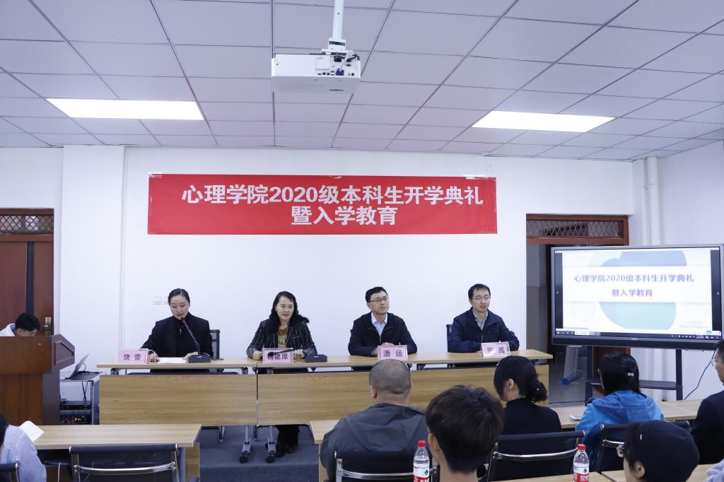 10月10日中午,437ccm必赢国际官网2020级本科生开学典礼暨入学教育在心理咨询中心举行。437ccm必赢国际官网党委书记杨建原、院长潘运、党委副书记饶蕾、副院长罗禹,各年级辅导员、教师代表以及2020级全体本科新生参加会议。会议由饶蕾主持。