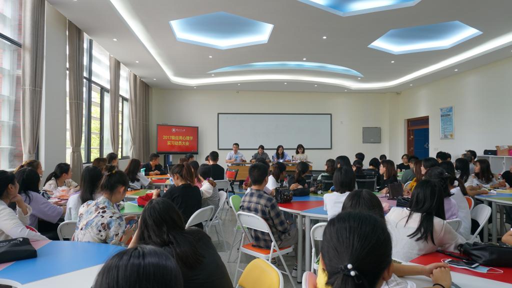 9月4日上午,437ccm必赢国际官网在心理咨询中心5202教室召开了2017级本科生实习动员大会。437ccm必赢国际官网党委书记杨建原、副书记饶蕾、副院长罗禹,辅导员龙女,各实习指导教师,以及2017级应用心理学班全体同学参加会议。