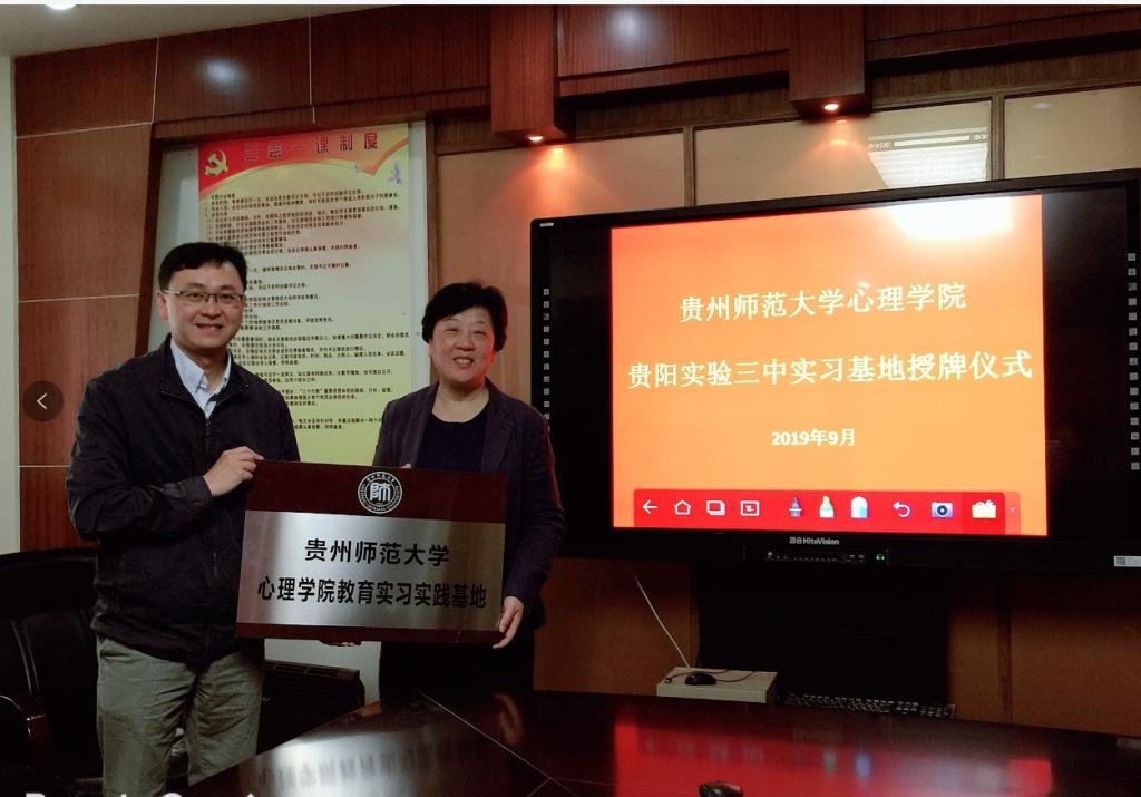 为加强学院与教育实习基地学校的联系,进一步了解实习同学在实习基地学校的学习生活情况,2019年9月26日,437ccm必赢国际官网副院长潘运、创新创业教学部主任陈维一行到贵阳实验三中看望实习学生,并与实习学生亲切座谈。期间,潘运副院长与贵阳实验三中石艳梅校长共同为教育实习基地授牌。
