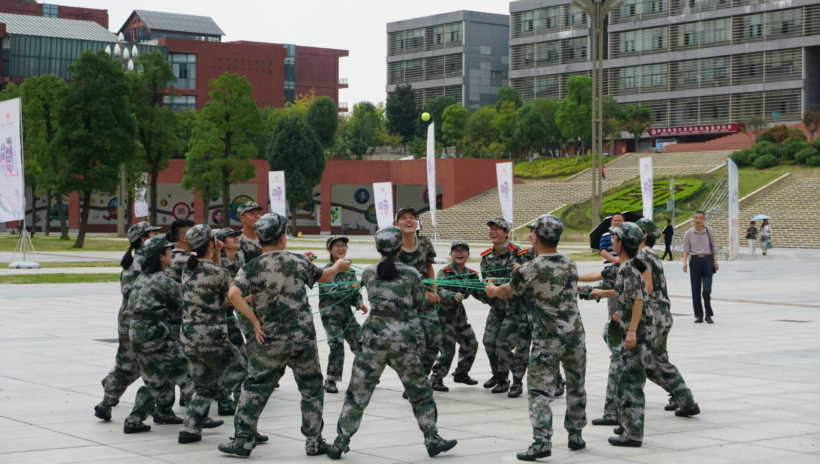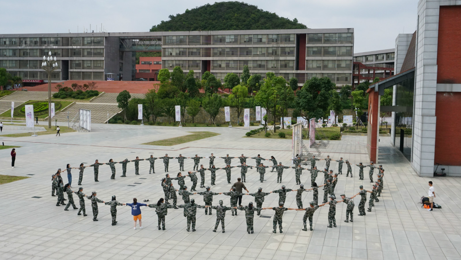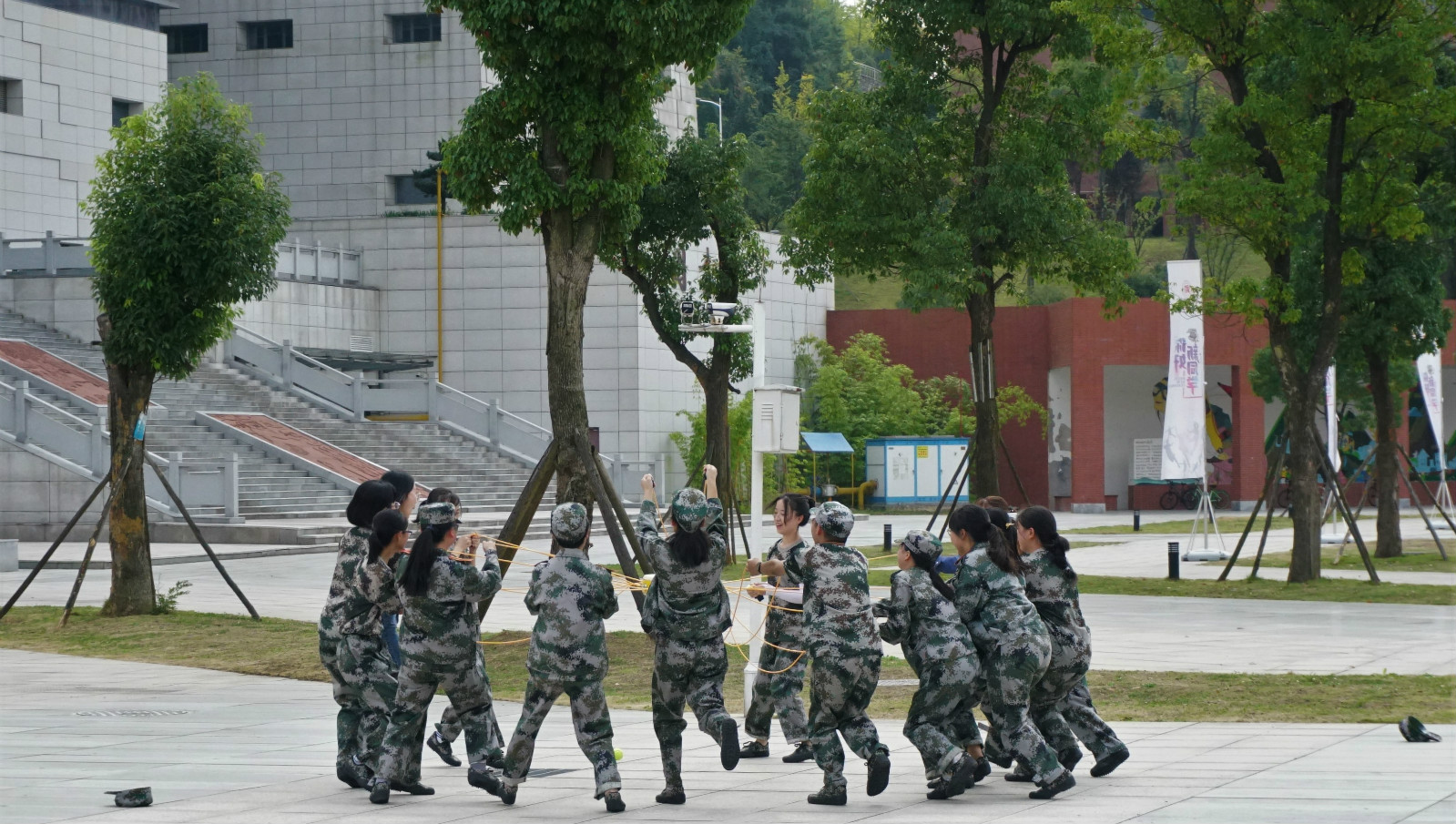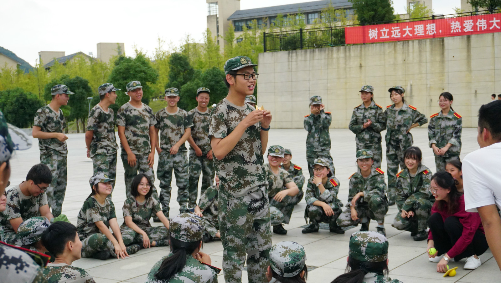 下午,在学校图书馆前广场,学院还开展了2019级新生团体素质拓展活动,活动由心理健康教育与咨询中心办公室主任杨世欣、2019级辅导员郑传章主持,活动以破冰、沟通交流、团体协作为主,组织了“花开花谢”、“鼓动人心”、“贪吃蛇”、“激情节拍”等多个教育性趣味性为一体的训练活动,同学们热情高涨,气氛热烈,大家密切配合,团结协作,活动的开展促进了班级建设与团体沟通。