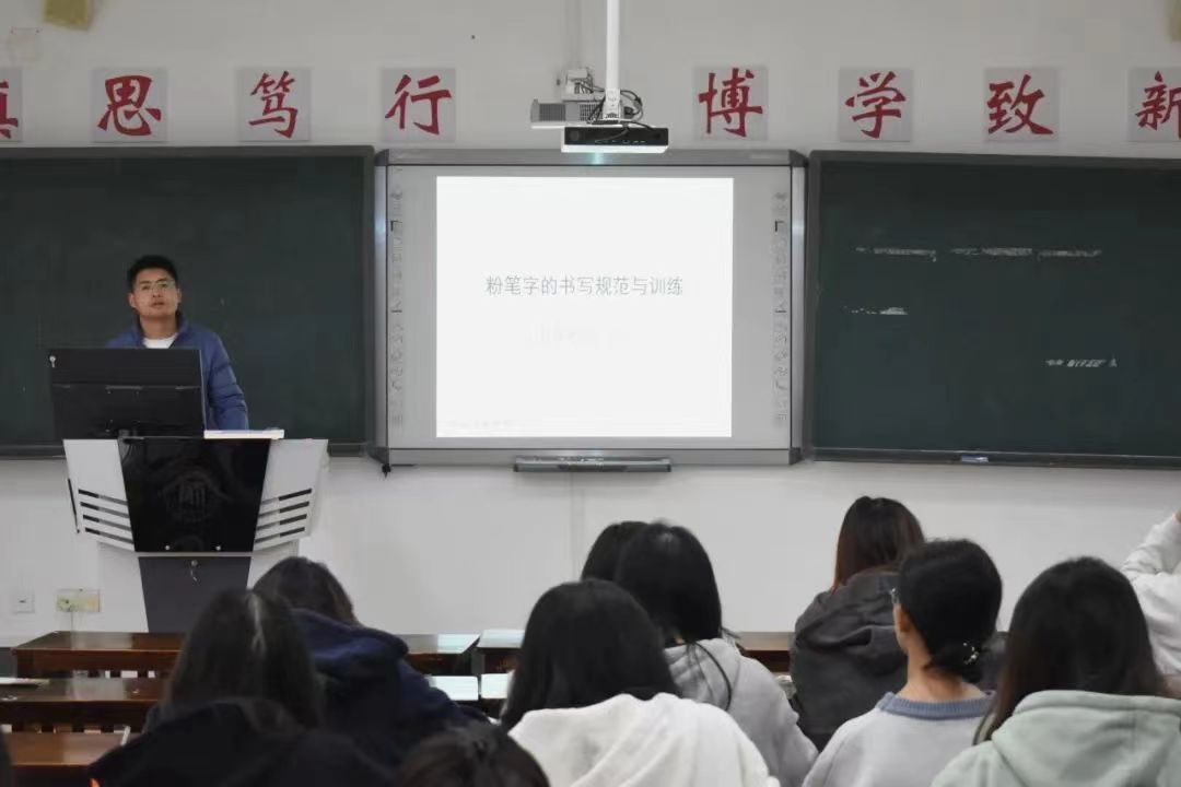 为了提高必赢学生的教学技能,增强同学们写好粉笔字的意识,强化学生粉笔书写能力,10月26日,437ccm必赢国际官网组织21级和22级本科班全体同学参加了粉笔技能培训,本次培训邀请了王旭老师对同学们进行针对性的训练指导。