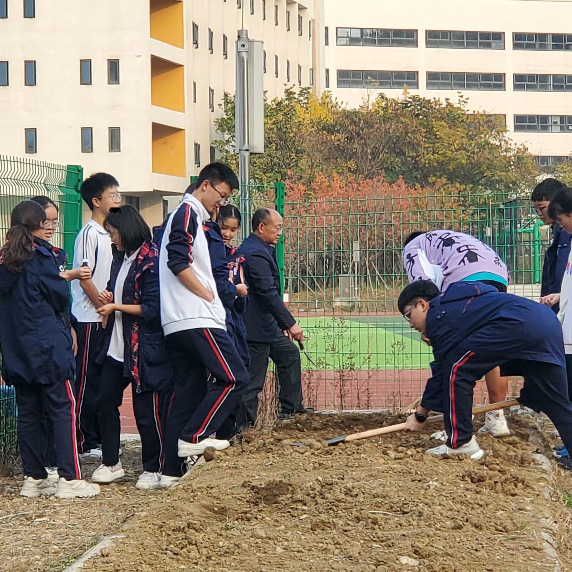 学校每周五下午最后一节开设了一堂《劳动与技术教育》的课,主要内容是在各班分管的土地上种农作物,这个学期种的是豌豆,这个星期的内容是松土,挖坑与播种。老师与学生都亲自下地劳作,体验播种的过程,亲自拿起锄头挖坑,播撒种子,浇水,不仅有利于学生体会到农作物的播种过程,提高学生之间的团结性,使其全面发展,也缩短了学生与老师之间的距离。