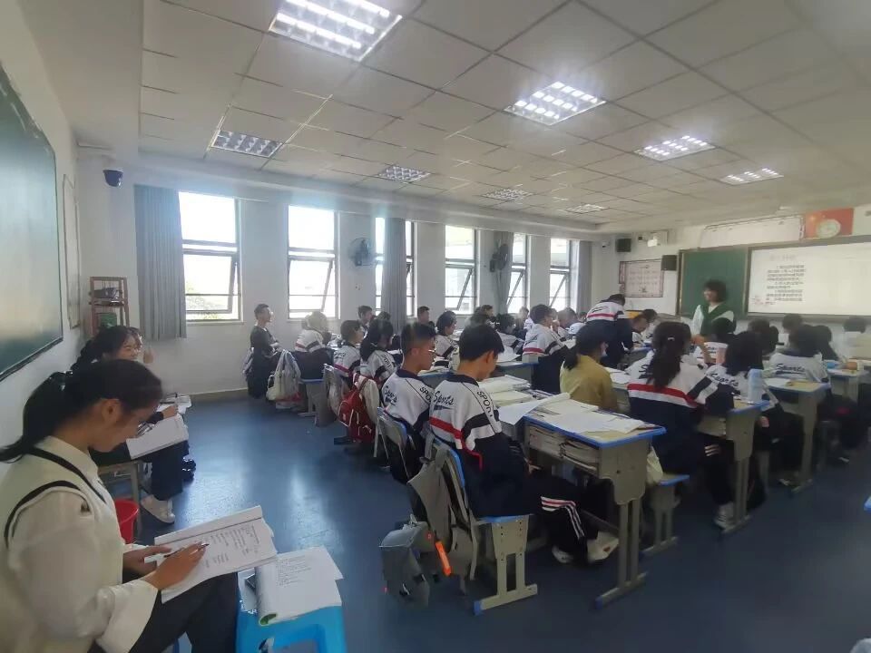 每位指导老师讲授新课时,实习老师们都会去听课,认真记录笔记,观察学生反映,课堂上边听边反思。课后总结,与老师一起评课,各抒己见,在这个过程中每位实习生都能在其他同学与老师的分享中得到提升。