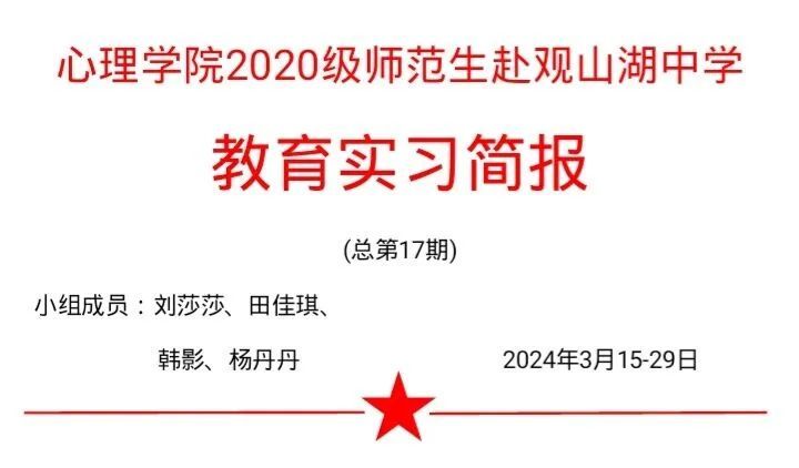根据观山湖中学的工作需要和安排,四位实习生杨丹丹、田佳琪、刘莎莎、韩影分别进入了安全办、思教处、教务处、办公室进行学习锻炼,协助各处室教师处理工作。同时根据学校教学及工作安排,进行了代课、监考、心理云平台管理、仪容仪表检查及对各个班级午休情况进行了检查。