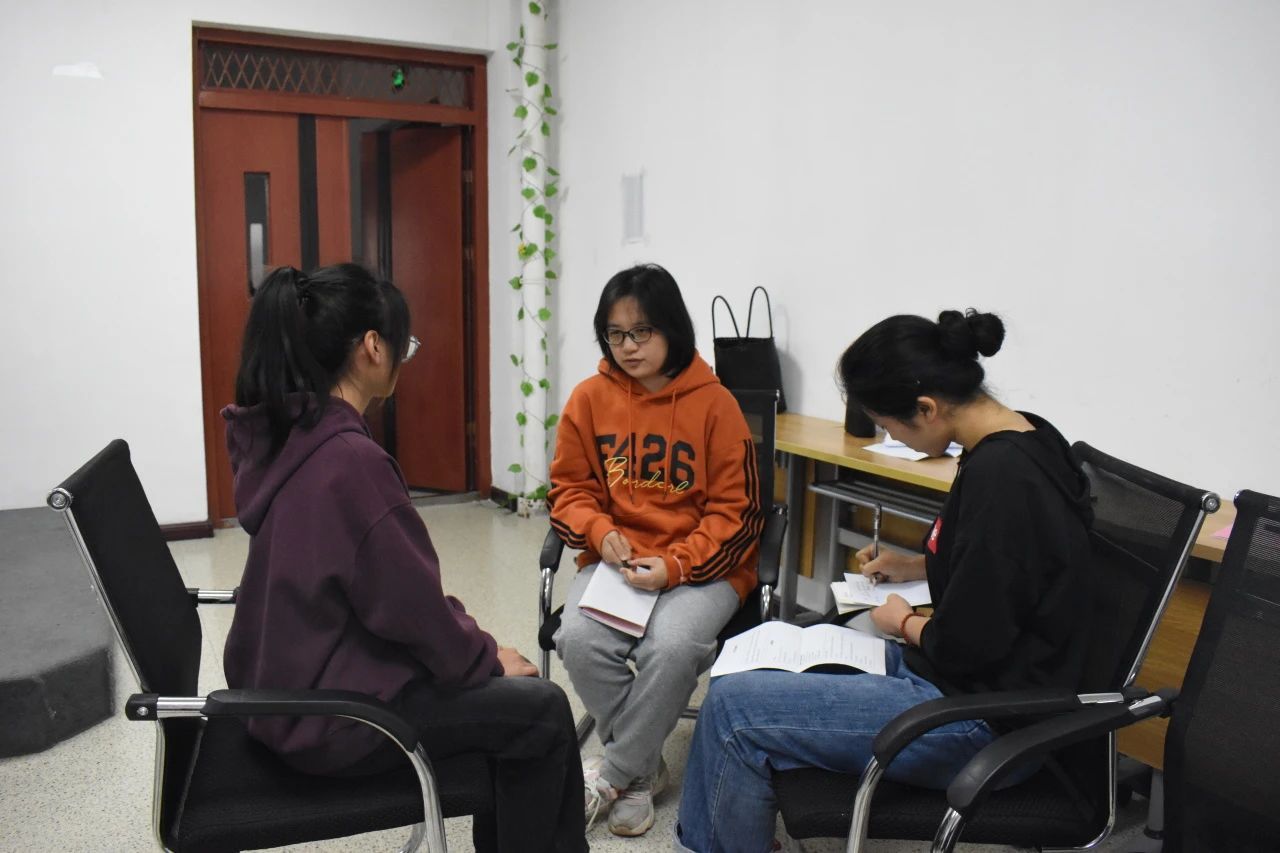 活动由浅入深,由理论到实践,整个过程充满了思想的大碰撞。心理咨询中心陈衍、梅冬梅老师用课件阐述了关于心理咨询的基本流程;曾珍老师分享了绘画心理学的基础知识,并带领大家体验了“雨中人”,让同学们侧面自测了自己的心理压力;王芳老师引导大家实际感受了焦虑情绪和人际关系量表的使用及在咨询过程中“阳性强化法”的巧妙运用;刘伟老师给大家带来了团体沙盘游戏的体验;刘宇老师及研究生田颖师姐让大家沉浸式过了一把做心理咨询师的瘾;郑传章老师在鲜活案例的描述中给同学们梳理了心理咨询的整个流程。