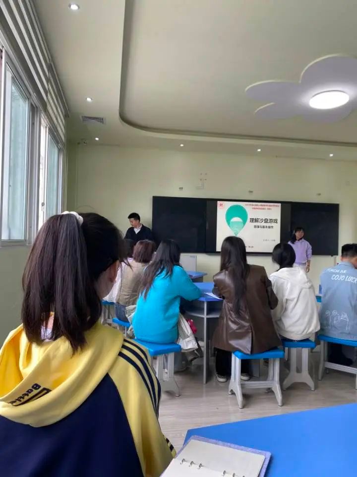 为进一步推进心理健康教育学科教研活动的开展,促进心理健康教育教师的专业发展。4月26日,在心理健康老师吴仕敏的带领下,实习生田佳琪来到了贵阳市师范学校附属实验小学参与了此次培训。培训主要讲述了沙盘游戏的历史与内涵、沙盘游戏的构成与运作、沙盘游戏的基本设置以及现场体验。通过培训后的相互交流,实习生们对沙盘游戏有了新的认知与感受,收获满满。