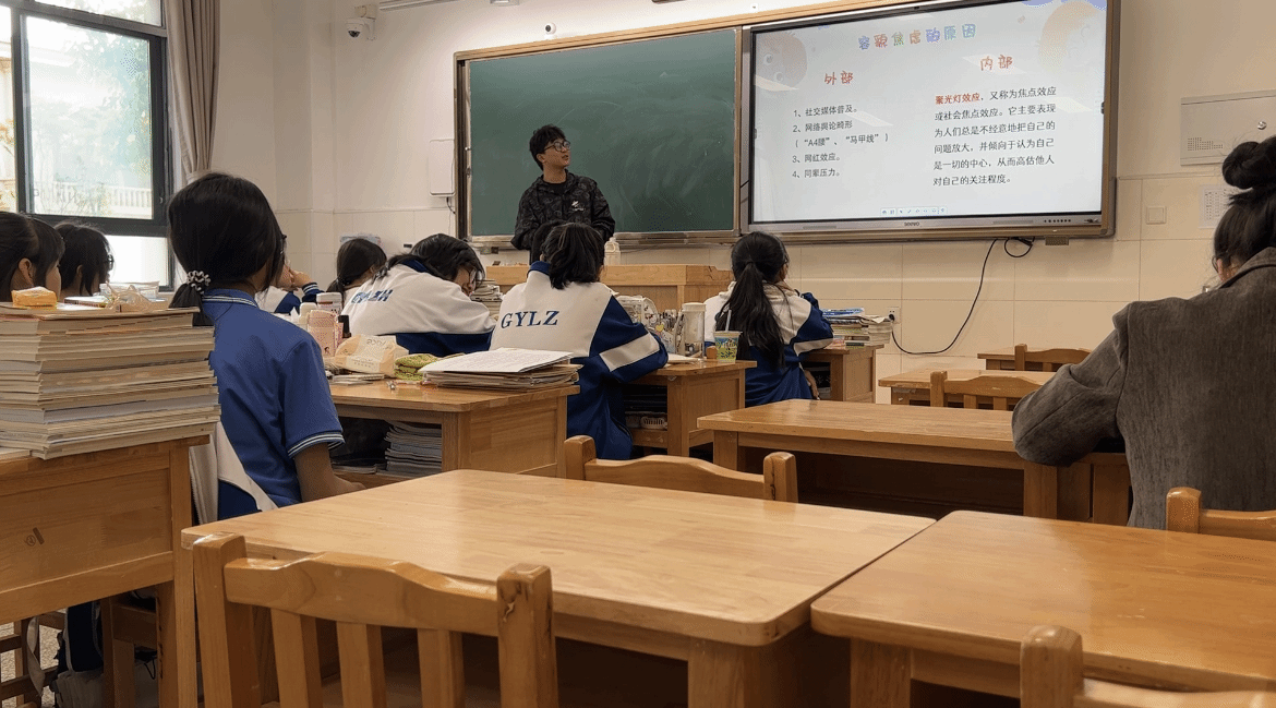本周在余恬菾老师的细心指导下,四名实习生的集体备课的教案、课件和教具均已完成,在进行无数次的无生试讲的打磨之后,我们分别在高一年级不同班级进行了以“拒绝容貌焦虑”为主题的心理健康课堂,旨在让学生了解容貌焦虑是什么、为什么,并且学会在学习生活中正确的看待自身的容貌问题,拒绝容貌焦虑。