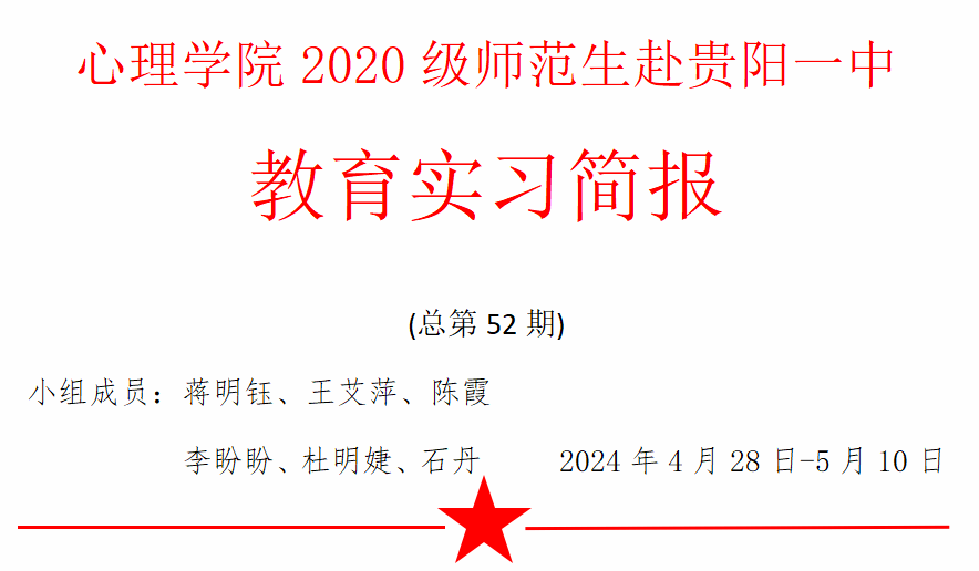 通过在贵阳一中的实习,我们深刻感受到了教育事业的重要性和美好。我们将继续保持热情和责任感,不断学习和提升自己,致力于将自己培养成为一名优秀的教育工作者,为学生的心理健康和成长贡献自己的力量。
