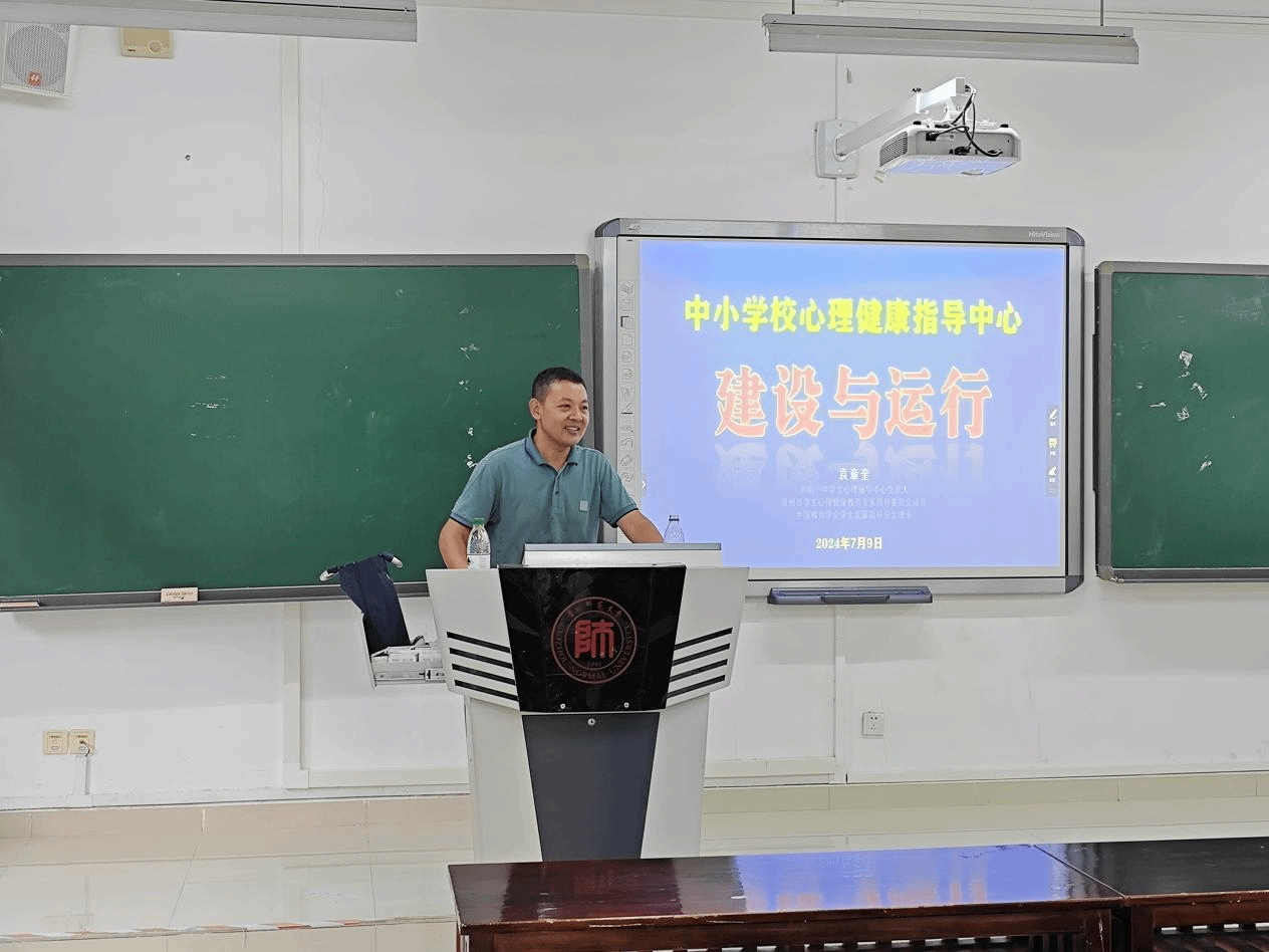 7月9日晚在GJ2206教室,437ccm必赢国际官网诚邀到贵阳一中学生心理辅导中心负责人袁章奎老师来院作题为“中小学心理辅导室建设标准与使用规范”的专题讲座。袁老师从相关文件规定和社会环境层面着重分析了学校心理健康教育的专用功能区功能和定位,通过师生问答互动的方式讲授心理辅导室的选址要求、主要承担功能、场地建设要求及工作基本原则等,同时,袁老师借用视频资料生动形象地为同学们介绍了贵阳一中有关心理健康教育的暖心小设计,让同学们在愉快轻松的氛围中直观认识学习到心理辅导室的建设标准与使用规范。