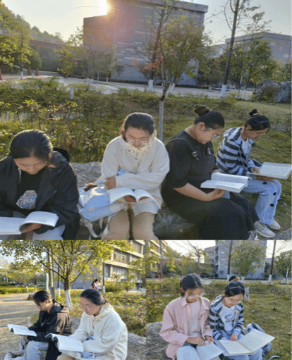 “不负秋日、不负晨时”,在这旭日东升、霞光盈空的早晨,“心理人”开启了他们一天的知识之旅,他们走进校园,感受清晨的一缕缕微风,阳光洒在他们的书上,随后一阵朗朗的读书声,唤醒了宁静的校园。同学们那清脆的朗读声充满着朝气与活力,象征着“心理人”“正心明理”的严谨治学态度,晨读让人保持思想活力,让人得到智慧启发,让人滋养浩然之气。