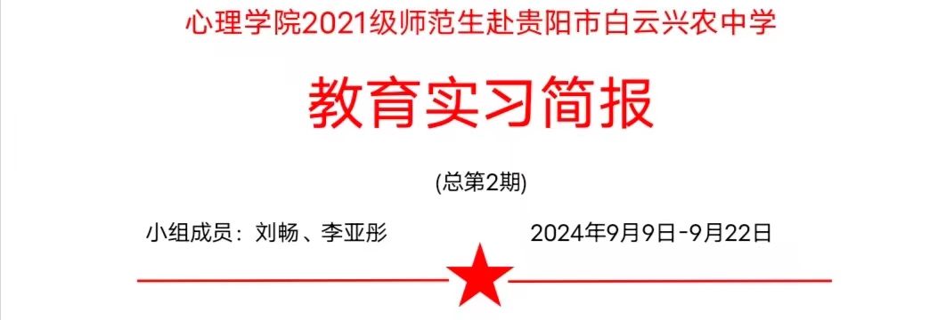 教育实习是师范生的一门重要课程,也是我们从学生到老师角色转换的一个非常重要的环节。通过教育实习,我们有机会与不同背景、需求的学生互动,理解学生的思想、情感和学习方式,将课本的知识运用到实践中,同时也为未来的教师生涯奠定坚实基础。437ccm必赢国际官网2021级师范生在贵阳市白云兴农中学第一、二周教育实习工作稳步进行。