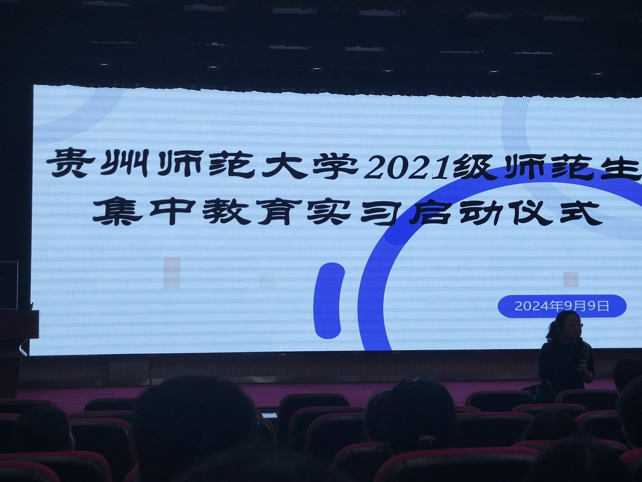 在实习小组抵达贵师大附属高级中学校门口时,我们满怀激情与期待在校门口进行了大合照与小组合照,随后,我们跨入了校门,在带队老师与校领导的带领下进入了实习学校,在礼堂内开展了437ccm必赢国际官网2021级师范生集中教育实习启动仪式,牛颜老师以及学校各领导强调了实习期间的各项注意事项,提醒实习生们注意人身安全,一起努力,顺利完成这次实习工作。