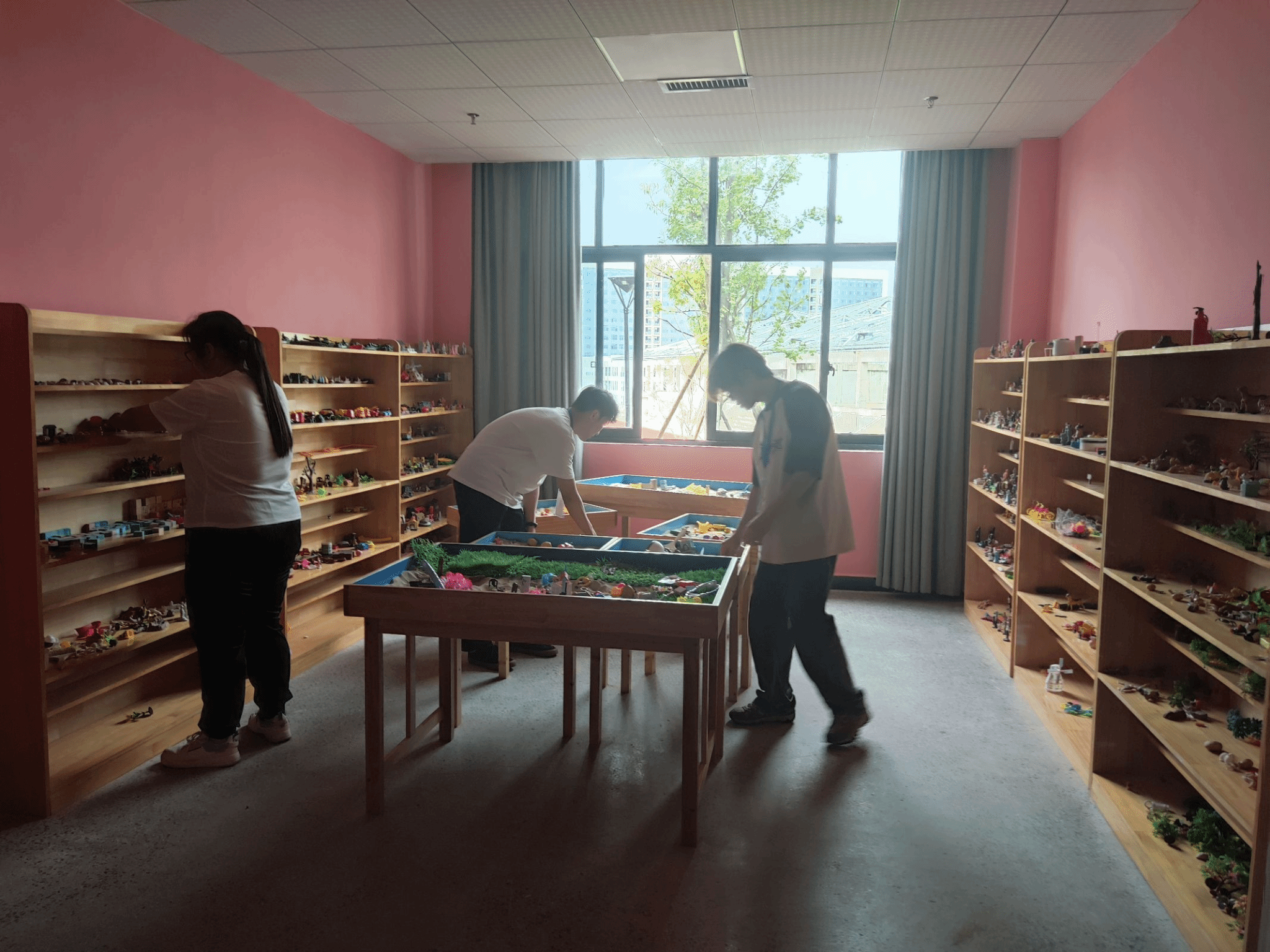 仪式结束后,我们来到了学校的学生心理健康中心,小组带队老师叶琴老师组织开展了小组第一次会议,介绍了学校的学生心理健康教育情况,并且为我们今后的实习工作制定了详细的工作计划,同时,叶老师也为我们安排了今后的工作场地。会议结束后,我们分别对中心的办公室、心理健康功能室、沙盘室与咨询室等地方进行了卫生打扫。