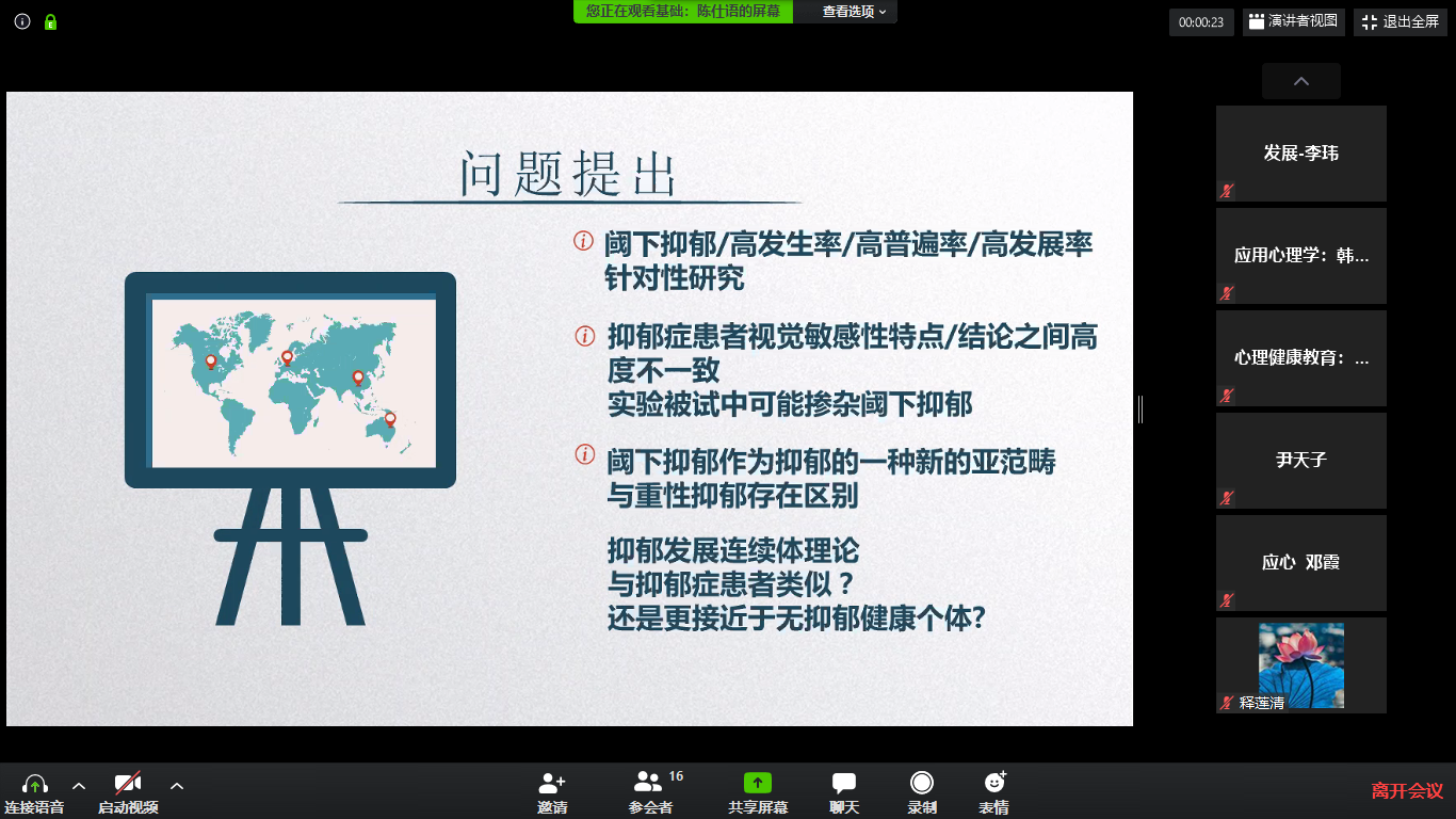 参与本次预答辩的2020届研究生共计39人,其中学术型24人,专业型15人,共分四组,每组有3位答辩委员参与答辩评审。预答辩开始前20分钟,各组答辩委员、参加预答辩的同学陆续进入会议。上午9点,预答辩准时开始,除答辩人员和答辩委员外,其他人员均保持静音状态。答辩委员们认真听取了答辩人对自己论文的陈述,并对论文调整提出相应意见,学院领导、研究生导师及部分研一、研二的同学共计20余人旁听、观摩了各组的答辩过程。