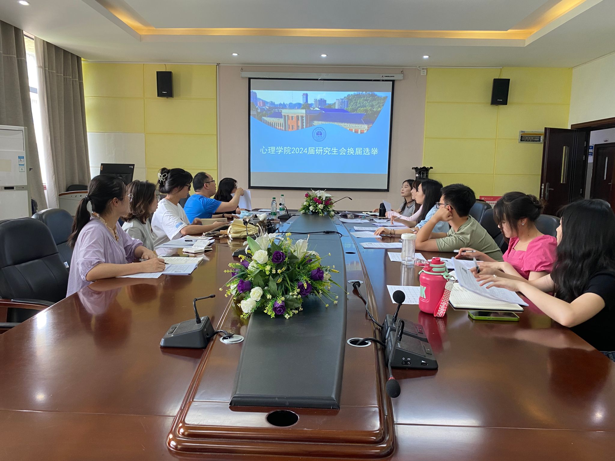 为了增强437ccm必赢国际官网研究生会的凝聚力和创新力,保持研究生会的稳定性和民主性,437ccm必赢国际官网研究生会于2024年6月20日上午,在437ccm必赢国际官网教学楼2302会议室召开换届会议。研究生科科长裴子钊老师、周瑗老师,研究生会主席团、各部门部长和参与换届竞选的十四位研究生会成员参加,会议由学院现任研究生会主席周馨悦主持。