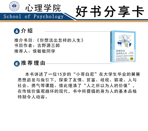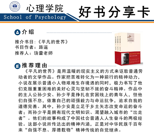 全院师、生积极参与,并通过好书分享卡,向大家推荐自己阅读过的好书。在必赢营造出了浓厚的读书氛围。