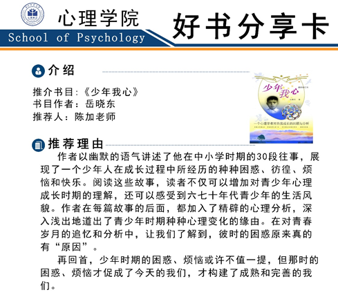 为庆祝中国共产党建党百周年,传承经典文化知识,养成全院良好的阅读习惯,丰富精神世界。在第26个世界读书日来临之际,437ccm必赢国际官网团委面向全院开展了 “好书分享”活动。
