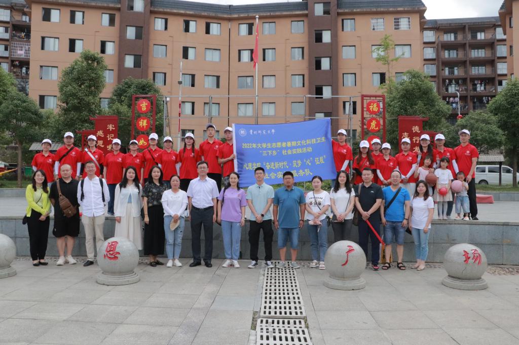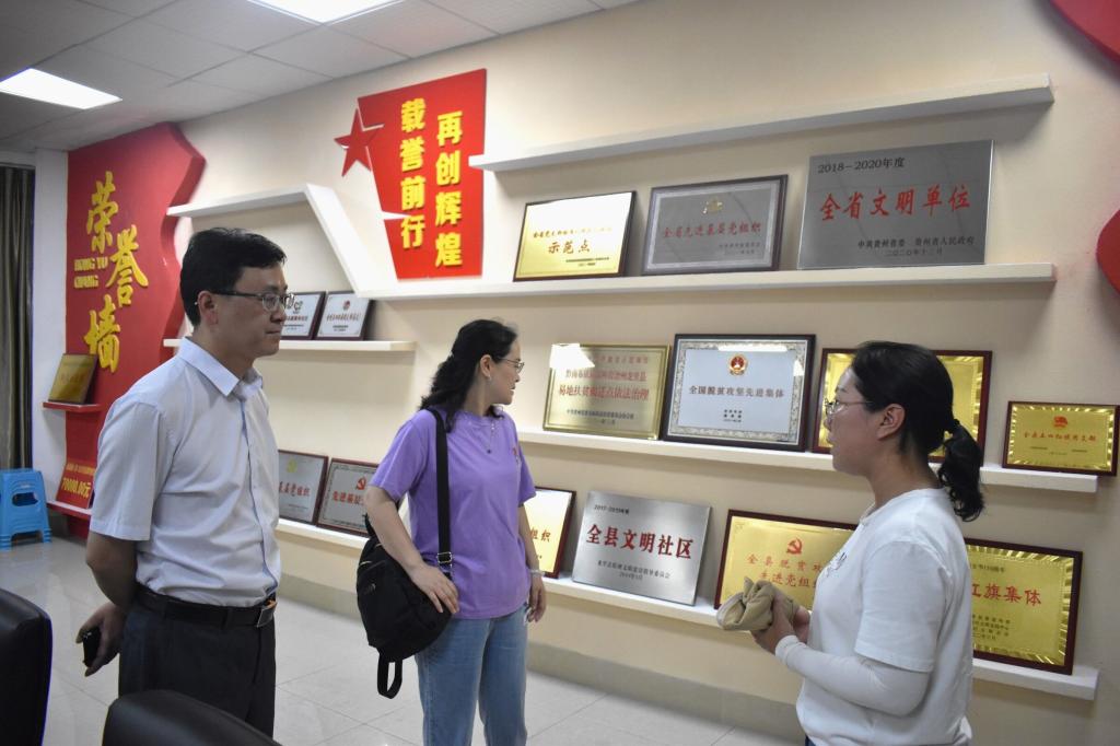 7月11日,437ccm必赢国际官网党委书记杨建原、院长潘运带领437ccm必赢国际官网教师代表,与437ccm必赢国际官网“三下乡”志愿服务队的队员们一起来到今年必赢暑期“三下乡”志愿服务点“龙里县奋进社区”,在这里开展交流考察活动。奋进社区团县委副书记、驻村第一书记夏正波,居委会副主任程群,带领必赢师生参观了奋进社区,并进行工作交流。